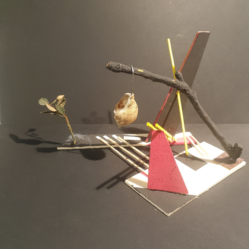 Dans blanc, coquillage, couleurs, fil de fer, jaune, matières, noir, resille, rouge, vegetaux