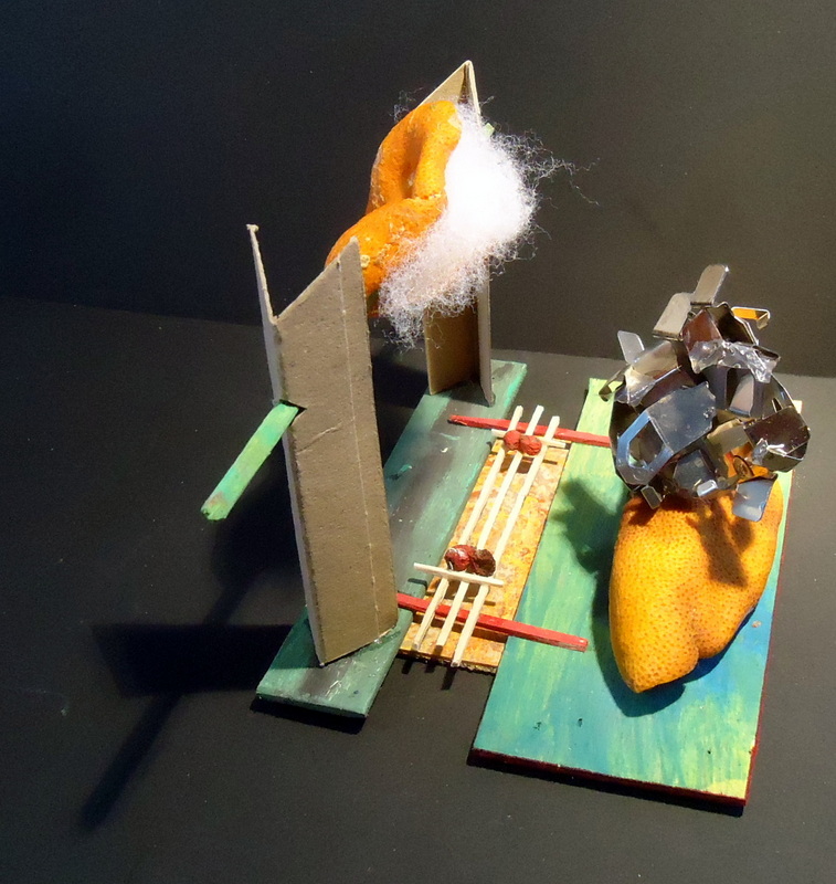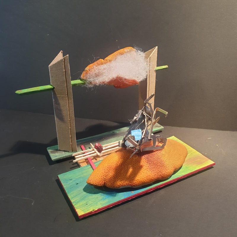 Dans blanc, caillou, couleurs, fil de fer, gris, jaune, matières, nuage, orange, resille, rouge, tout, vegetaux, vert