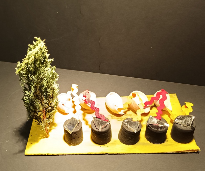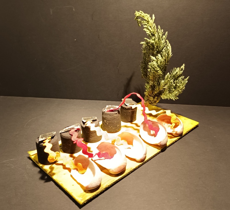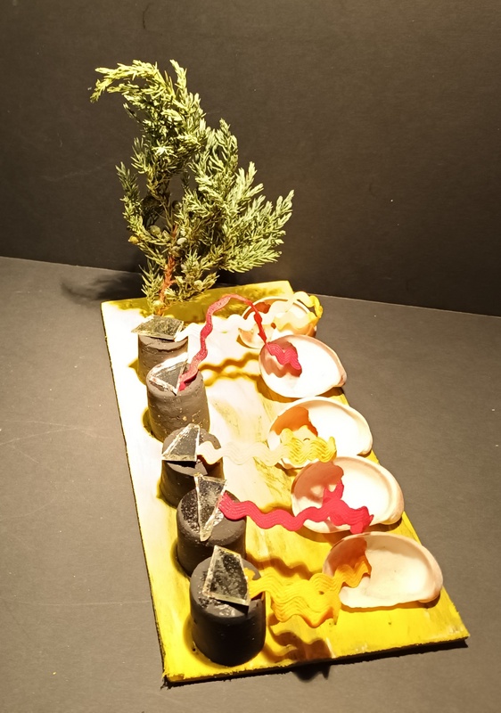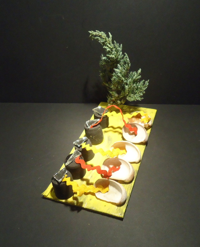 Dans blanc, carton, coquillage, couleurs, jaune, matières, noir, papier, rouge, tout, vegetaux, verre, vert